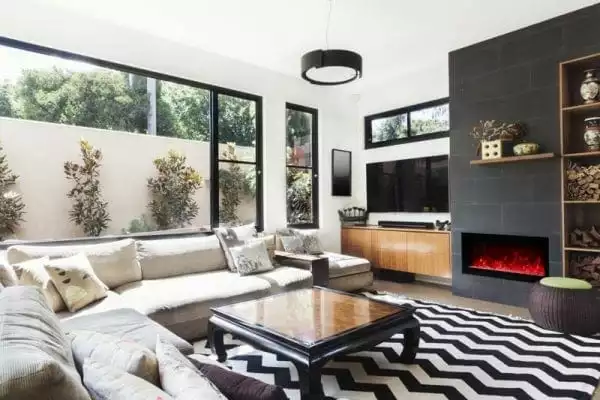 The stunning SYM-74 electric fireplace, part of the SYMMETRY Series by Amantii, is a revolutionary new electric fireplace!