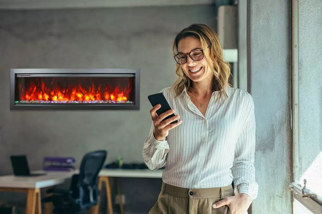 The WiFi app allows for control of fireplace functions including sound, programmable timers and control of the flame color and speed. Superior construction ensures a long lasting electric fireplace with design integrity at it’s core. Symmetry Bespoke was design with intelligent, mobility in mind.