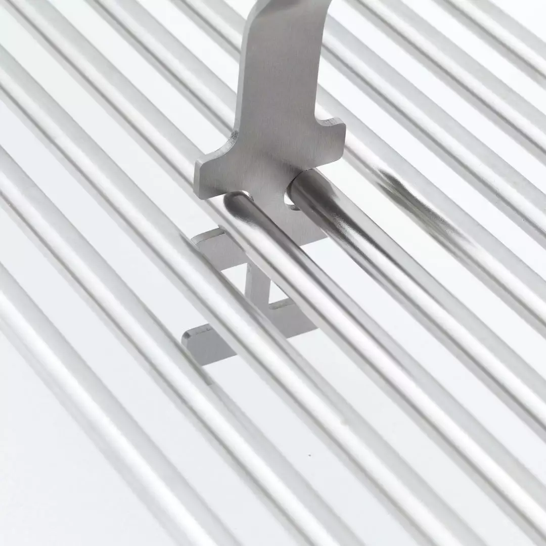 Broil King’s new simplified grid lifter removes both cast and stainless cooking grids in Broil King grills. One set of tines to remove cast and another to remove stainless cooking grids. Stainless with resin handle.