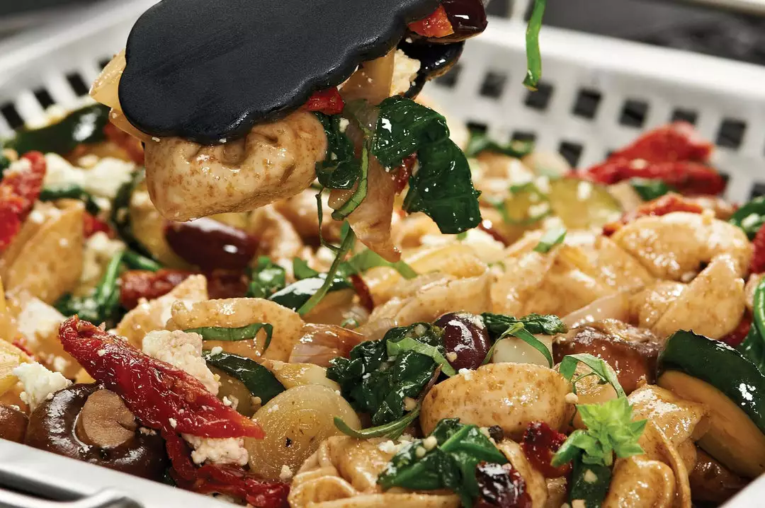 Perforated stainless steel grilling wok with stainless handles. The single draw design improves functionality and rigidity, it also makes it much easier to clean. 12-in x 12-in x 2-in