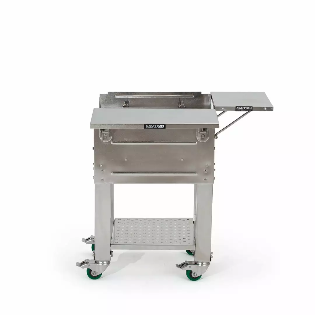 Stainless steel cart for Green Mountain Grills “Trek” grill.