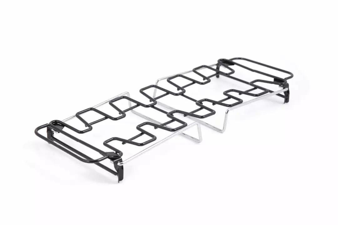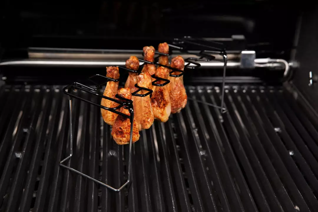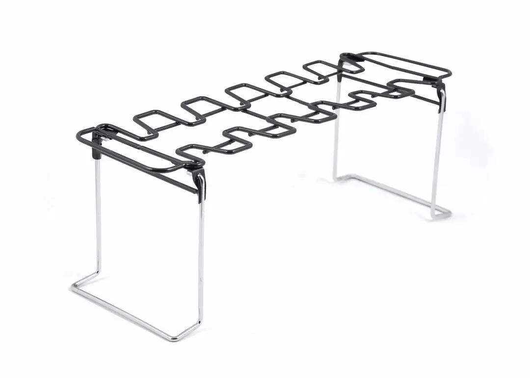 A convenient non-stick coated wire wing rack with folding legs, the best way to roast chicken legs and wings on the grill without the hassle of flipping, turning or sticking. For wings and drumsticks.