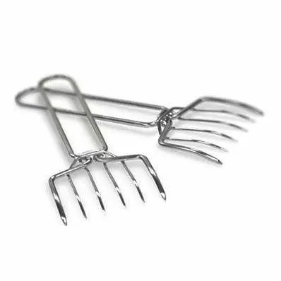 Shredding pork, chicken, or beef has never been easier. Spare the fork these meat shedding claws can hold with the larger outside tines and shred fine strands of meat with the smaller inside tines. Crafted of stainless steel with an easy to use grip that can be held multiple ways.