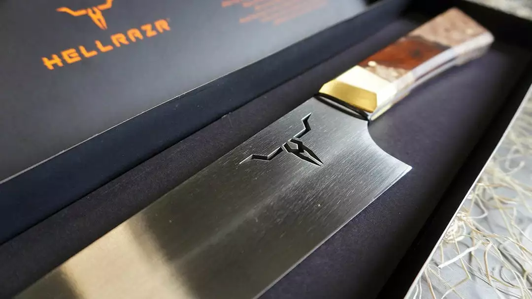 HELLRAZR™ chef’s knife with AEB L stainless steel blade for good cut retention and easy sharpening.