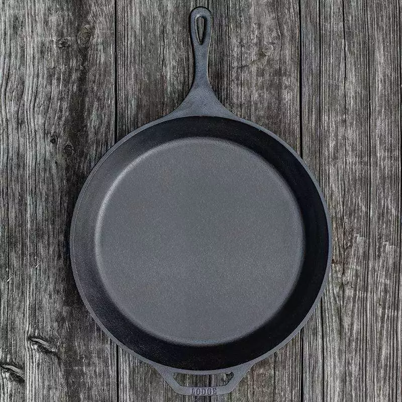 Cook for a crowd with the 15 Inch Skillet. Features both an assist handle and a comfortable, raised handle for better control when maneuvering around the kitchen and hanging storage when not in use. This skillet provides excellent heat distribution and retention for consistent, even cooking. Seasoned and ready to use.
