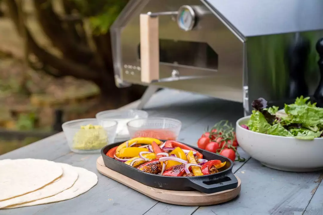 This premium cast iron pan brings together the versatility of our Sizzler pan with the distinctive mouth-watering grill marks you can only get from a griddle pan – because after all, the first bite is with the eye! Meats and veggies seared on the Ooni Grizzler are out of this world!