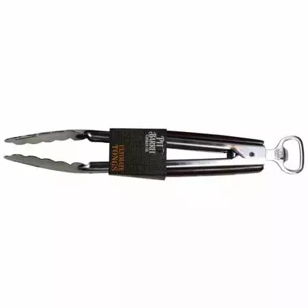 Slotted ends elevate the look of these high-quality Ultimate tongs which is especially convenient when grilling and hanging in your Pit Barrel®. The heavy-duty stainless steel arms feature our signature wood handle, which is finished off with a bottle opener at the top. We know beer and BBQ are made for each other.