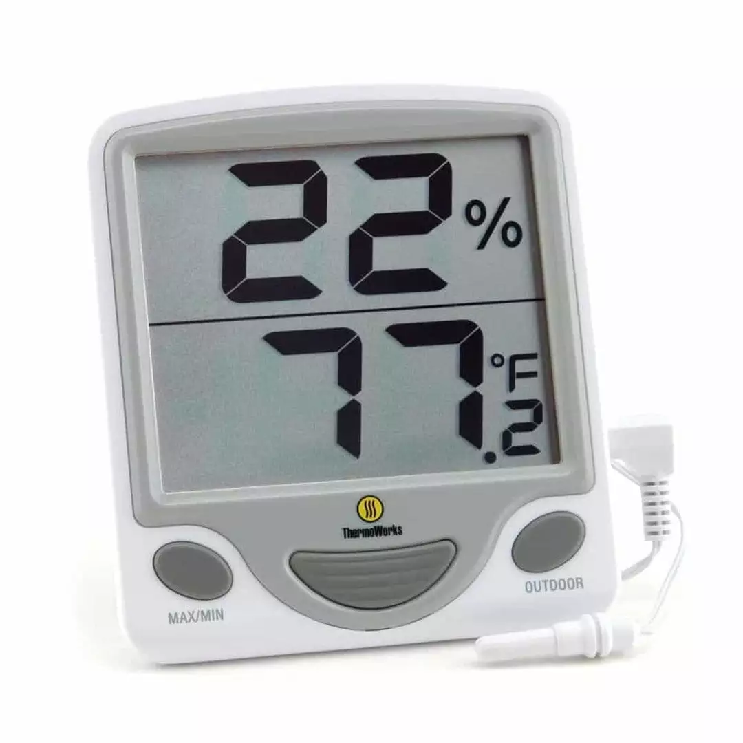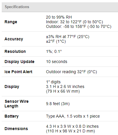 Perfect for home, office, and factory, our new RT817E displays indoor and outdoor temperature as well as indoor humidity. Each unit ships with an external temperature sensor with 10 feet of cable to measure temperature in a remote location.