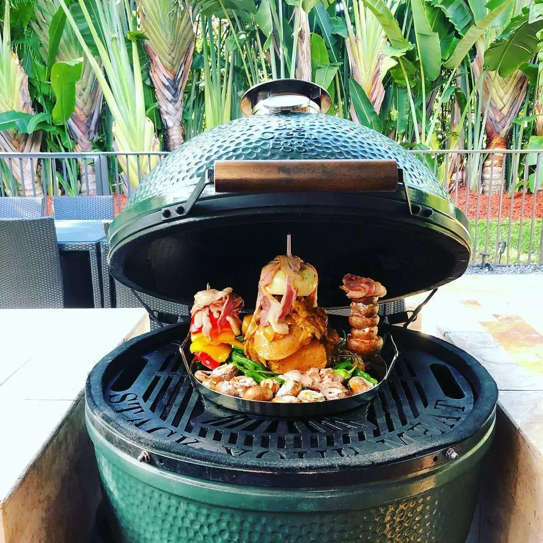 “Trompo” in Spanish mean “Top”. This versatile cooking accessory allows you to vertically stack your meats creating amazing flavors and juicy outcomes.