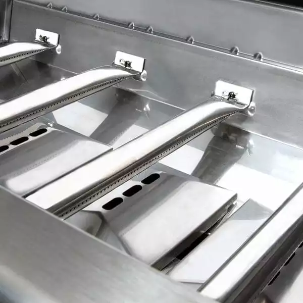 The Regal™ S510 Commercial features 625 sq. in. primary cooking surface and includes 5 stainless steel Dual-Tube™ burners, solid stainless steel 9mm rod cooking grids, stainless steel Flav-R-Zone™ cooking system, and electronic ignition. The S510 Commercial features a stainless steel cart, base, and rigid propane tank bracket for easy changes.