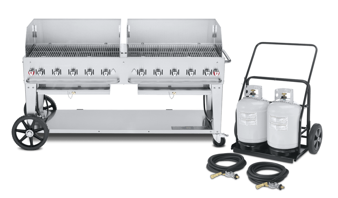 We have delivered what you have been asking for. Ideal for the large caterer, golf club or hotel. This grill includes everything you need in one complete package. All options and accessories are available for this model. Also available in a 60″ model. Package includes: 2 x 36″ wind guards Remote propane cart RPS486072, 2 – 50lb propane cylinders CYL-50 & 2 – 25′ hoses with quick disconnect.