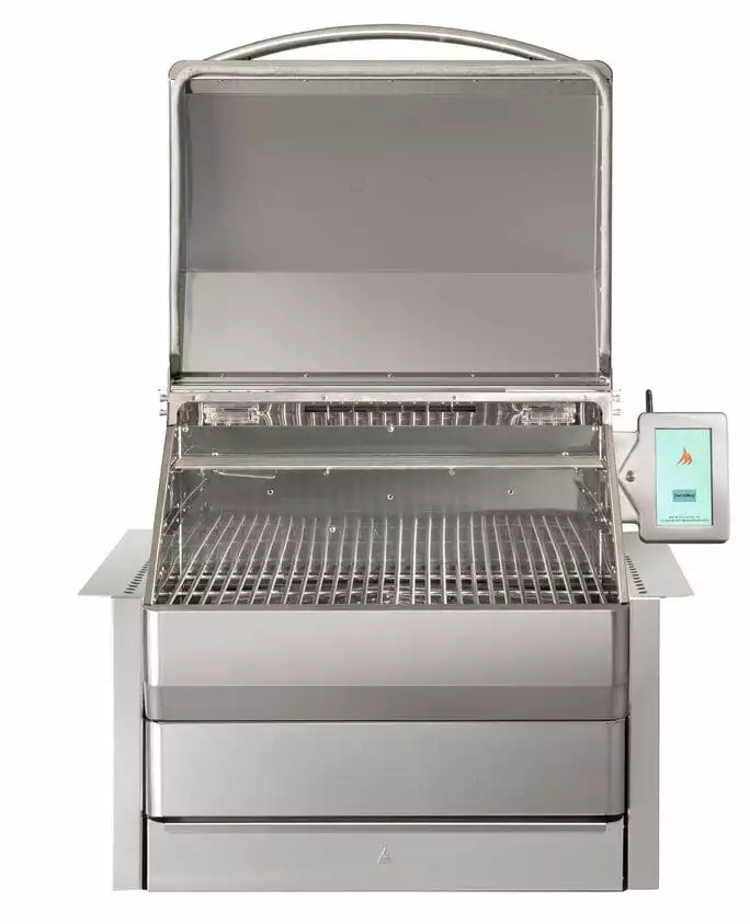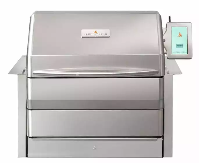 Double-walled construction and made with the highest quality stainless steel, the Memphis Pro Built-in ITC3 pellet grill combines the very best parts of a kitchen oven, a real wood fire, a BBQ gas grill, and a smoker. Also available in a Cart model.