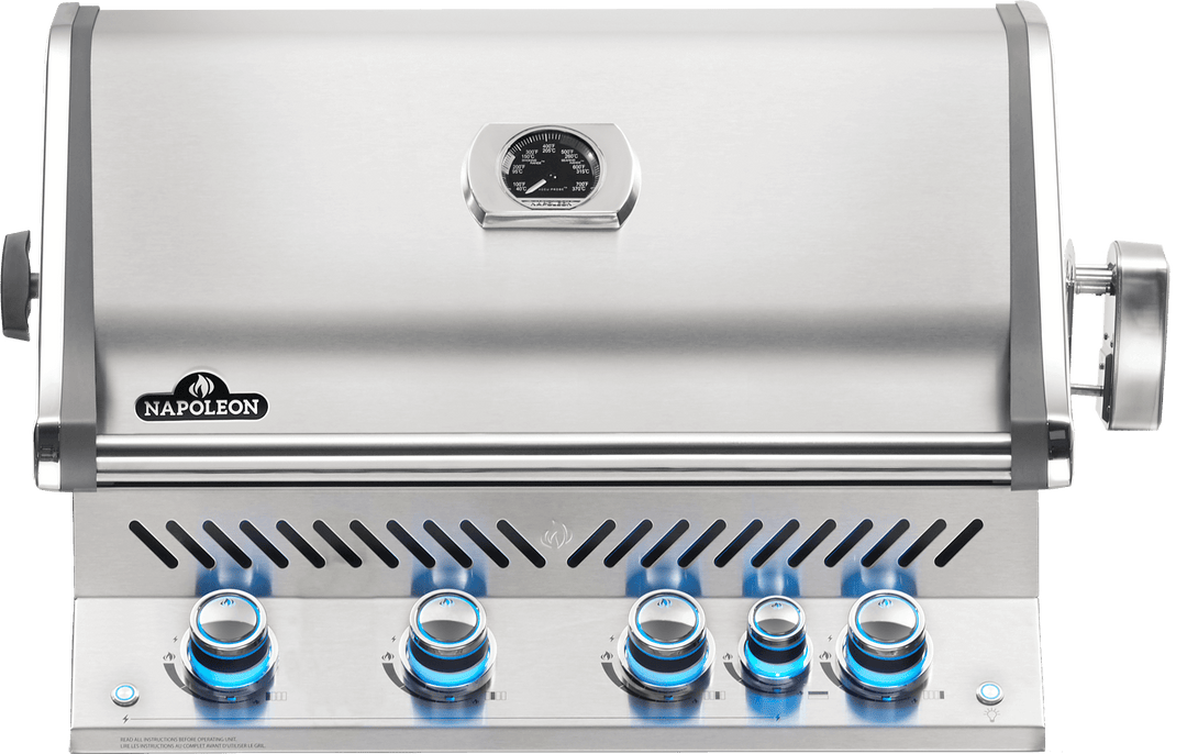 Buying a Built-In BBQ means that you can have your steak and eat it too. The Napoleon Built-In Prestige PRO™ 500 BBQ Head with Infrared Burner provides unparalleled performance and durability without skimping on style. Shining stainless steel construction makes this grill durable while chrome accents gleam with luxury. The LED Spectrum NIGHT LIGHT™ control knobs illuminate the control panel in a color to match your mood, with near endless possibilities. This grill isn’t just good-looking; get the most versatile grilling experience, whether you are grilling low and slow or searing something scrumptious; you’ll know it’s a Napoleon with the iconic WAVE™ cooking grids and proximity lighting. Use the integrated infrared rear burner for succulent rotisseried meals. Perfect and professional, the PRO™ 500 Built-in Built-In BBQ is the ideal addition to your outdoor gourmet kitchen.