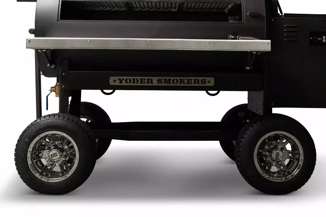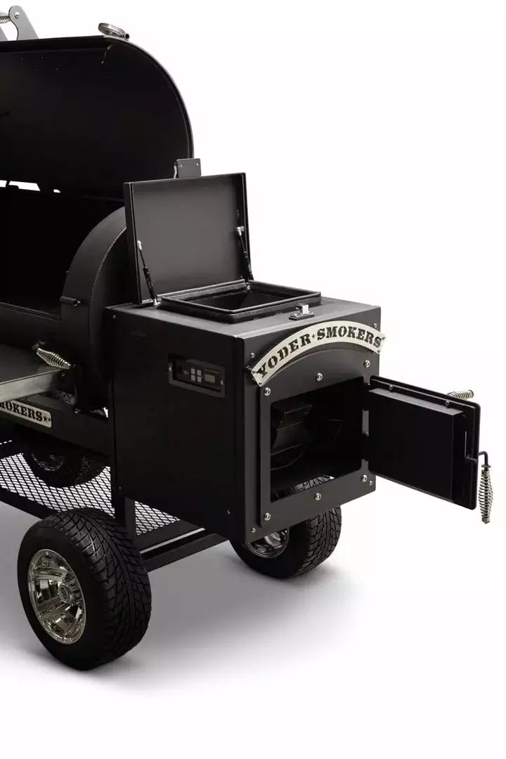 Whether you are competing in the fast-paced world of barbecue competitions or engaged in mobile catering, the Yoder Smokers Cimarron S Pellet Smoker delivers a robust cooking area in a small footprint to fit neatly into your mobile cooking package. The texture and color produced by the Cimarron are unmatched in the world of pellet grills. Our heat management system and Yoder Smokers ACS Adaptive Control System with two integrated food probes delivers results that are akin to a wood fired offset. The marriage of a pellet grill and old-fashioned wood pit to create an incredible smoker, designed with world-class results in mind.