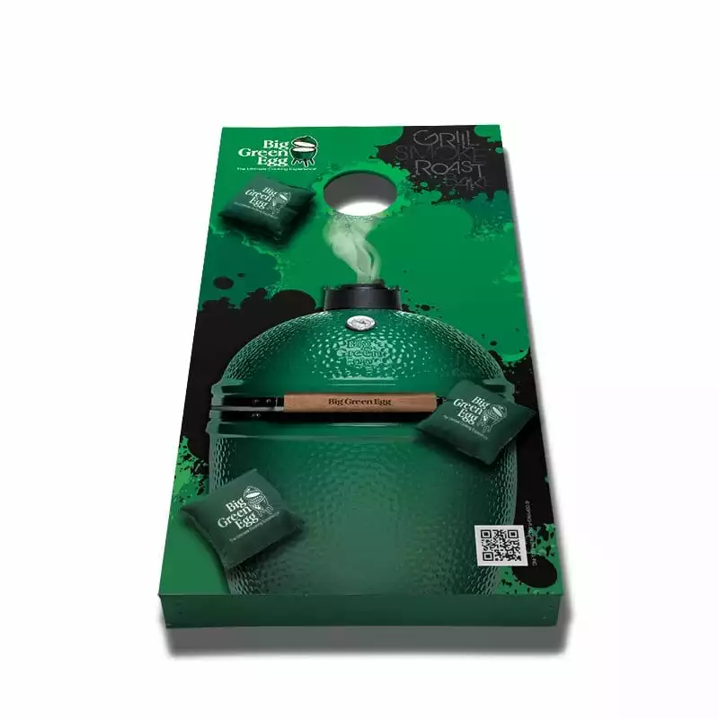 Fun for all ages with the colorful and durable custom Bean Bag Toss Game. High impact Big Green Egg graphics makes this set a stand-out at EGGfests, tailgates, barbecues, campouts and just about anywhere!