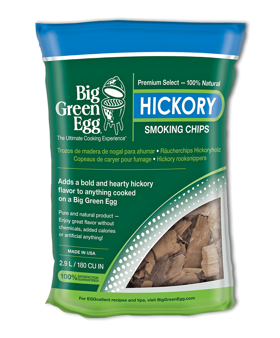 - Hickory chips enhance any red meat such as brisket or pork shoulder, as well as turkey and chicken. 2.9 L/180 cu in – 113986