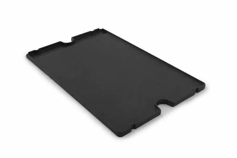 - Reversible cast iron griddle with matte porcelain coating. Use in place of cooking grid section.                                                           Â