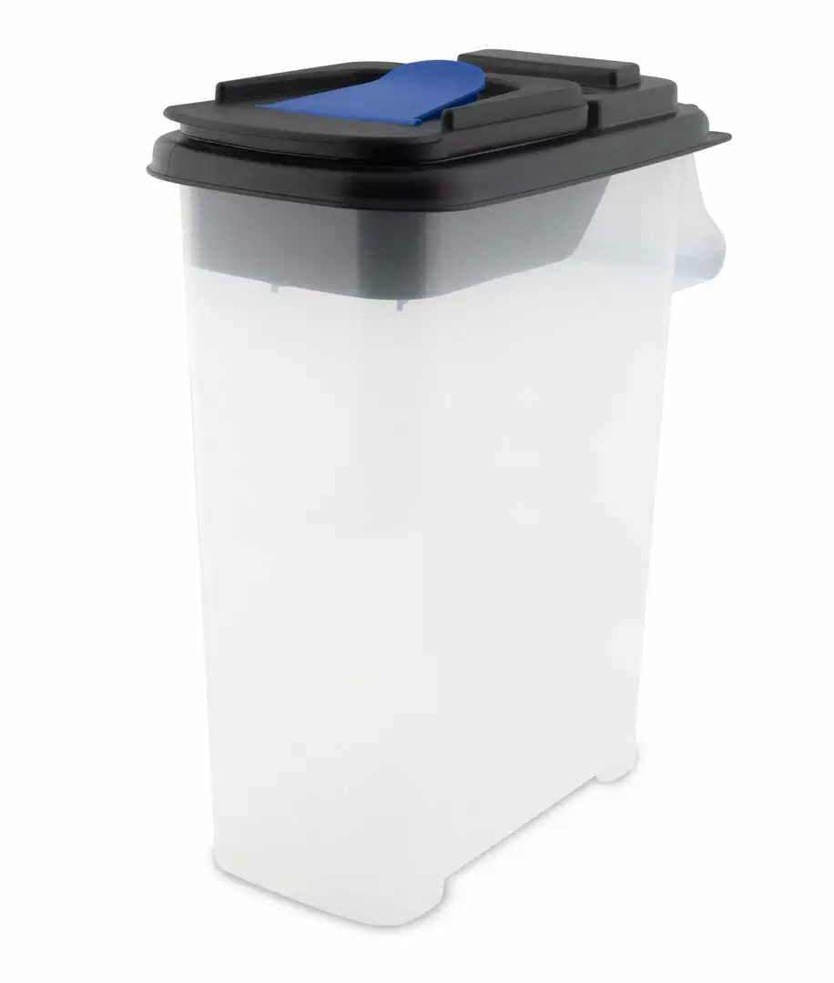 Comfortable heavy duty handle and retractable spout make for easy pouring. Larger lid section for use with Broil King® Pellet Scoop.