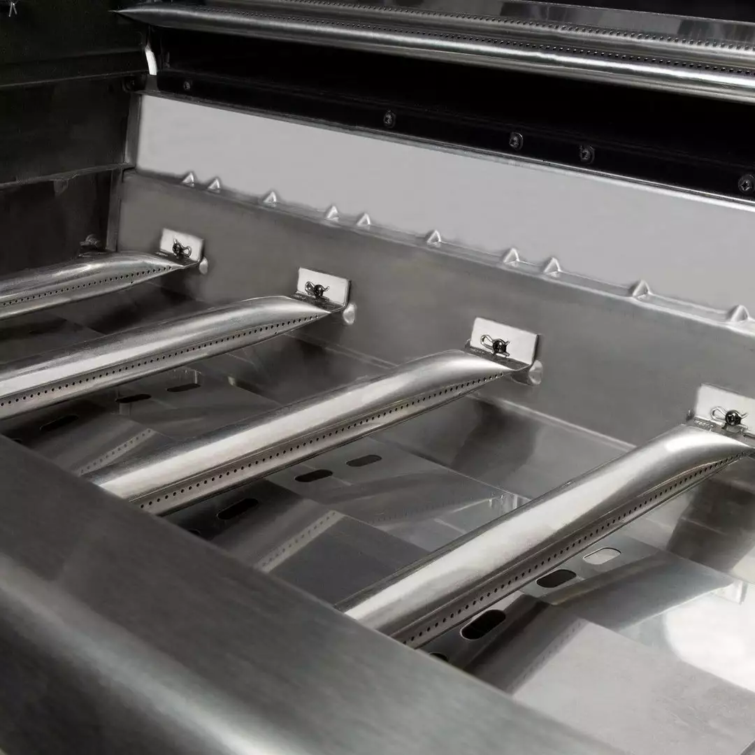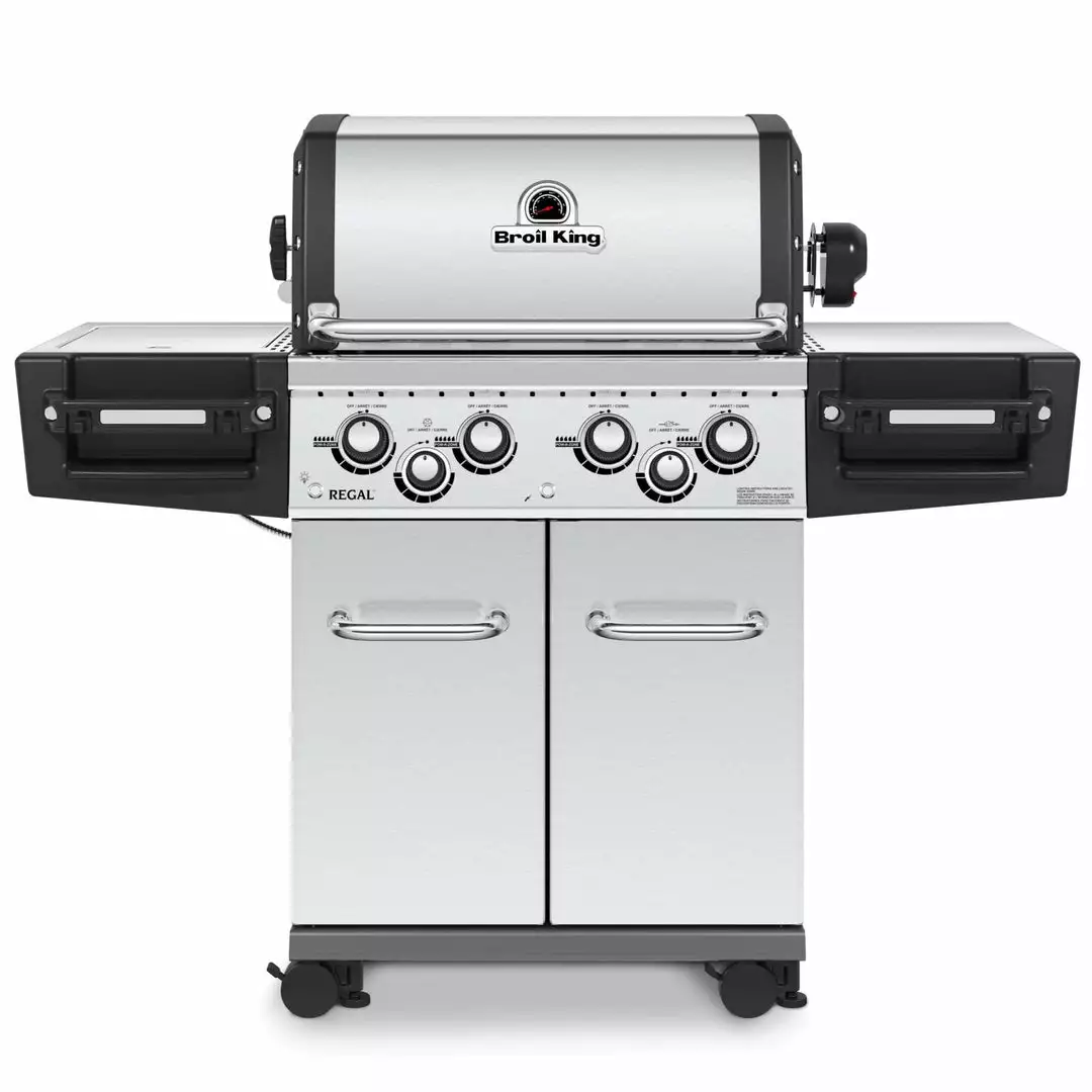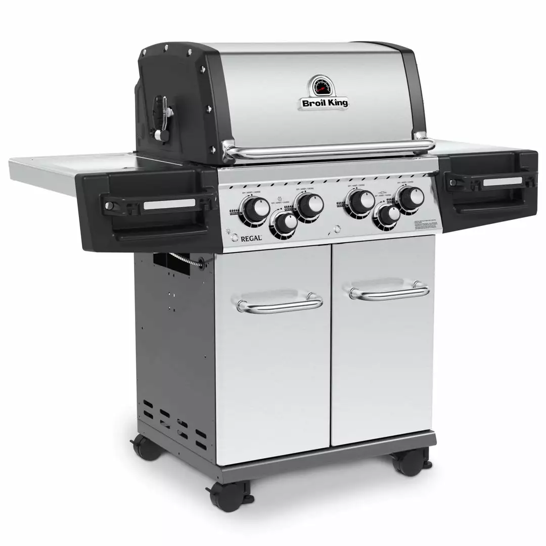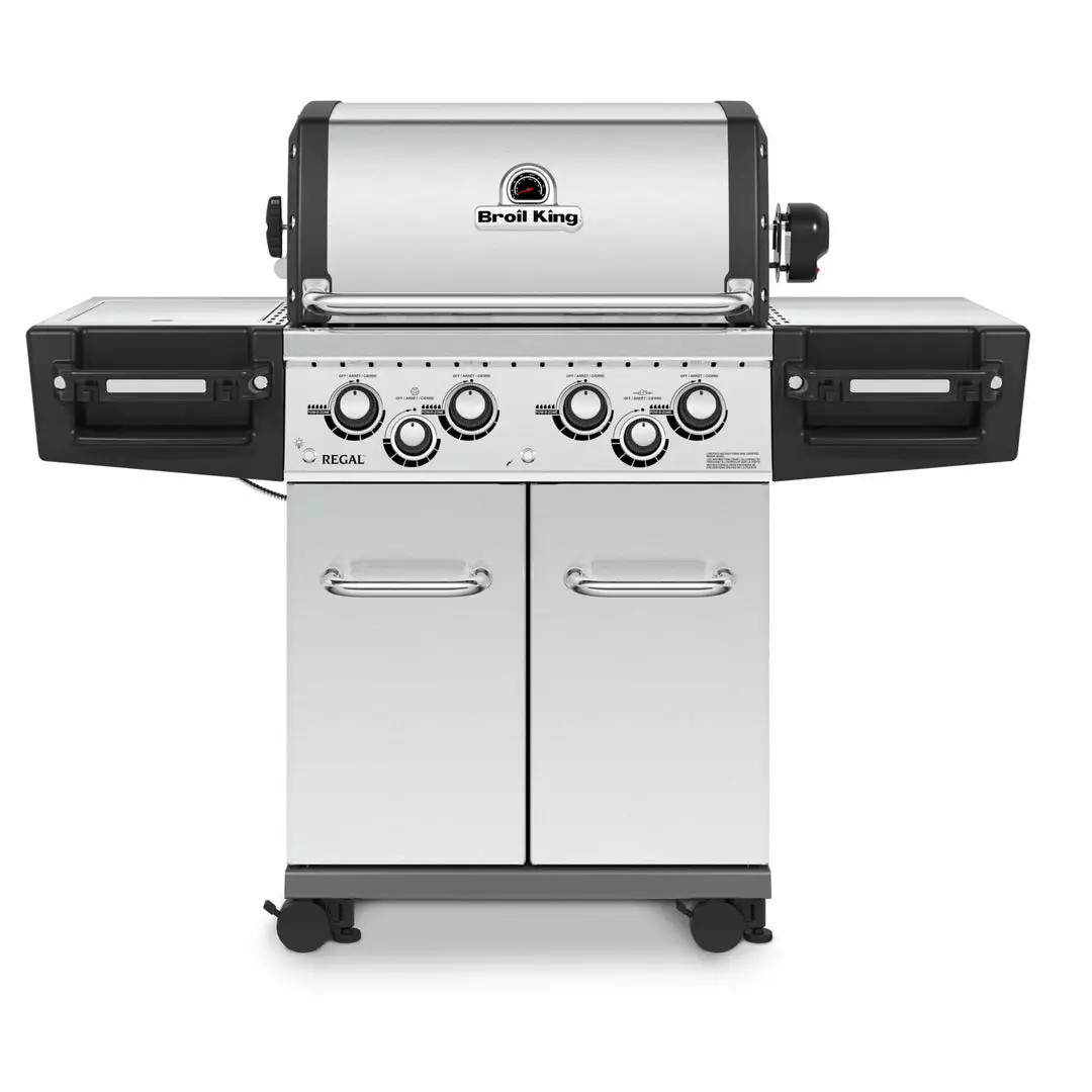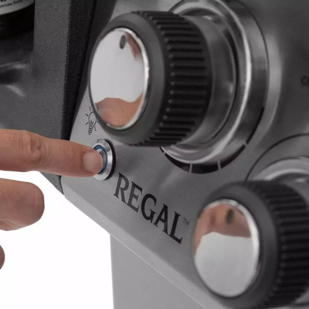 The Regal™ S 490 Pro features 695 sq. in. total cooking space including porcelain coated warming rack, solid 9mm stainless steel cooking grids, stainless steel Flav-R-Wave™ cooking system, 4 stainless steel Dual-Tube™ burners, stainless steel side shelves, illuminated control knobs and an enclosed cabinet base.