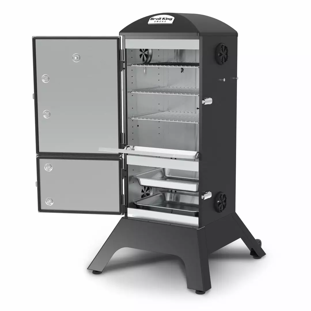 Broil King® proudly introduces a new line of exceptional vertical smokers. Available in either propane or charcoal models, Broil King® Smoke™ cabinet smokers are engineered to create mouth-watering, authentic Smoke™ flavor. Every detail is evident throughout these smokers. From durable construction and stylish accents to exceptional cooking versatility, Broil King® brings people together. Great food, great flavor, great barbecues every time.