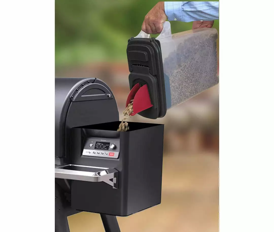 Store and add pellets to your grill with ease, using the Buddeez pellet storage dispenser.
