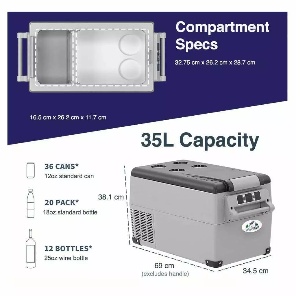 The new 35L Moose portable 12V refrigerated cooler is a game-changer for road trips, overlanders, campers and off-grid and outdoor enthusiasts. Keep your food reliably fresh and cold for as long as you need it, without the hassle of melting ice.