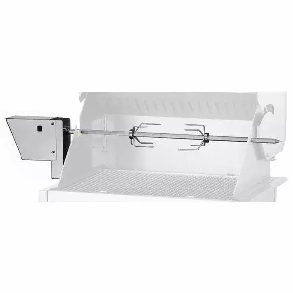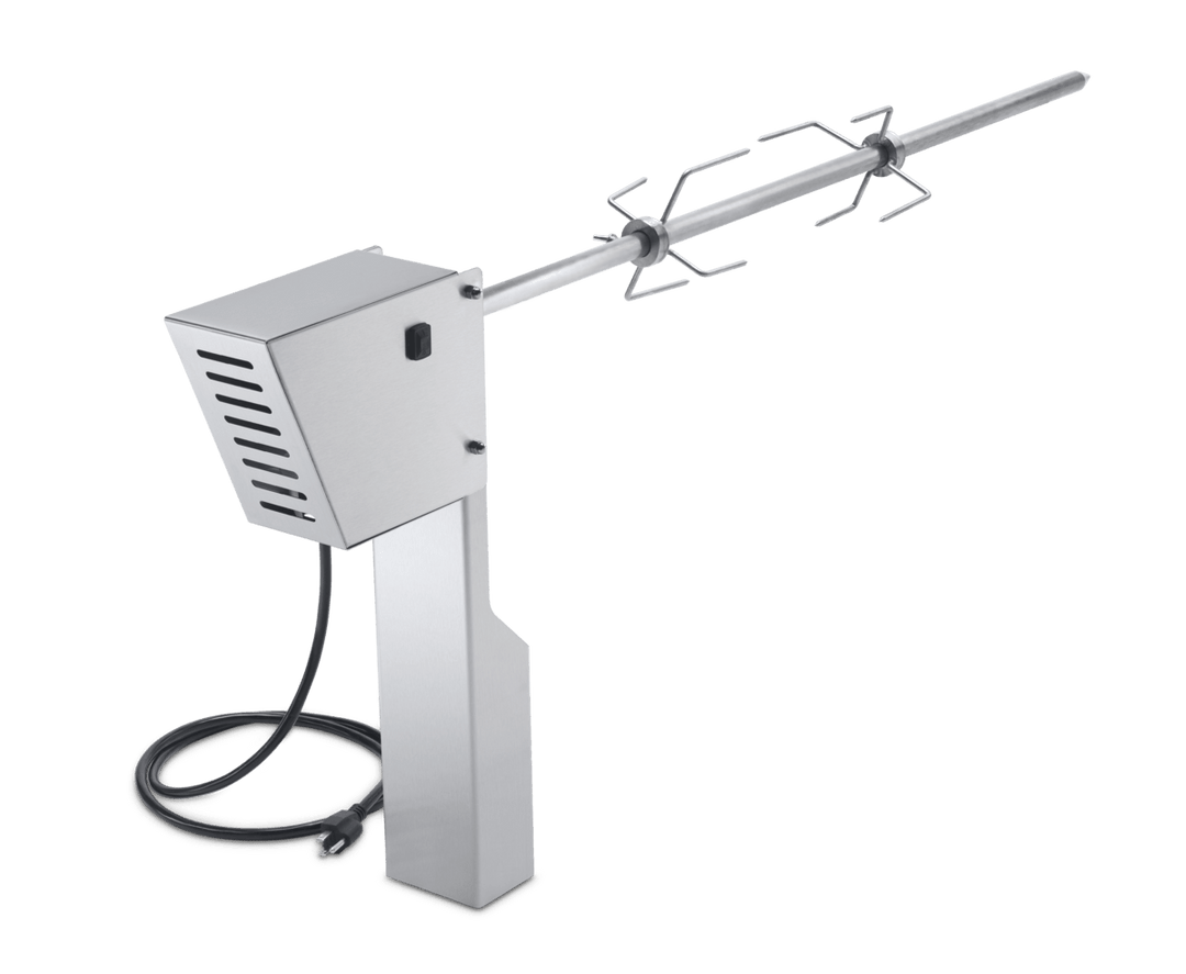 This Crown Verity CV-RT motorized rotisserie for select Crown Verity outdoor grills assembly provides you with everything you need to cook rotisserie-style on your outdoor grill. The included set of 5″ forks are ready for pigs, chicken, prime rib, and turkey, and can accommodate up to 140 lb. To use this rotisserie assembly, your Crown Verity outdoor grill must have a roll dome installed (sold separately). This unit includes a 120V connection to operate the motorized rotisserie.