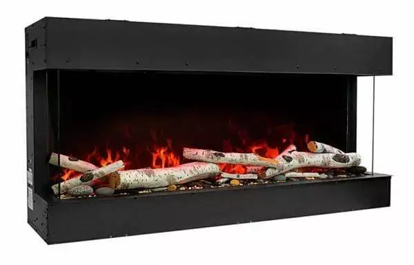 The Slim model comes standard with a 10 piece log set and Charcoal grey fire glass, vermiculite, black fire glass plus a remote.