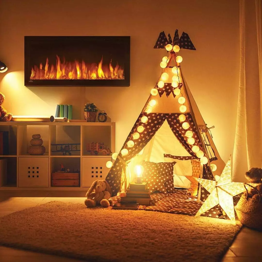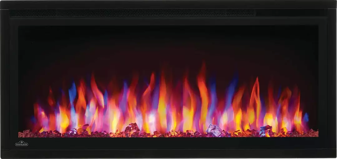 Make a statement with the Napoleon Entice™ 36 Electric Fireplace. This fireplace puts out an incredible amount of heat, glittering with multicolored flames and a crystal ember bed. You don’t need a specialist or a gas fitter for this expansive beauty, just hang on the wall and plug in for instant transformation of your space. Traditional orange flames, or cool blue flames, or a combination of the two will set the mood. The shallow depth means that this fireplace doesn’t intrude into your living space, but simply accents it with the expansive view of the fire. Place this electric fireplace anywhere you want to make a huge impact, perfectly suited for either your home or a commercial setting.