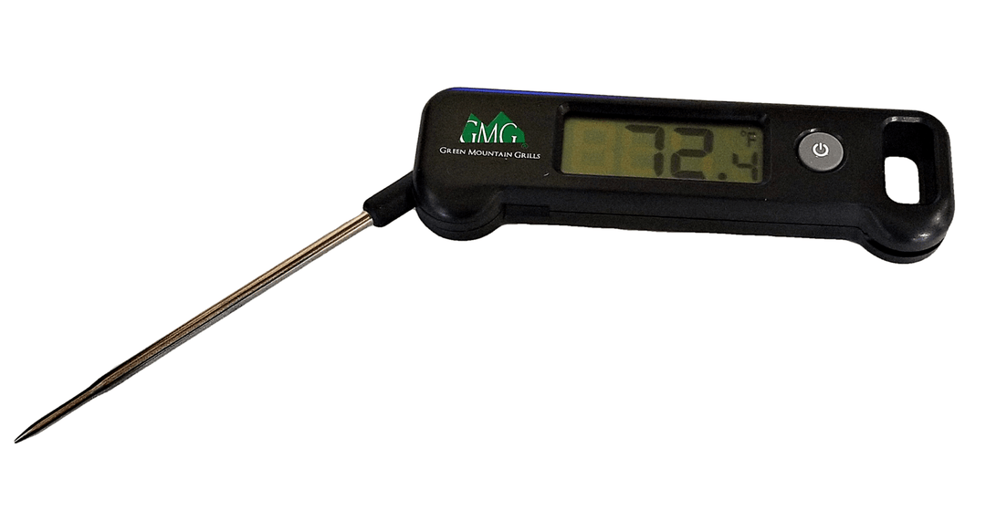 GMG model of the Maverick DT-05 fold out instant-read food thermometer. It has one easy on/off button and thin tip for faster and more accurate temperature reading. Temperature range is from -4°F to 392°F (-20°C to 200°C)