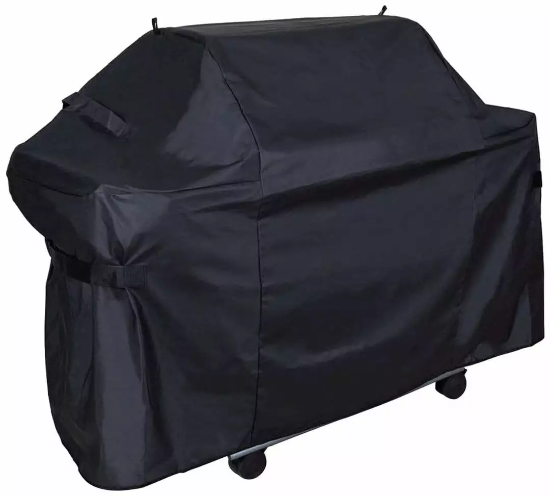 61-IN x 29-IN x 42-IN Deluxe PVC / Polyester Grill Cover with side handles, hanging loop and hook and loop closures.