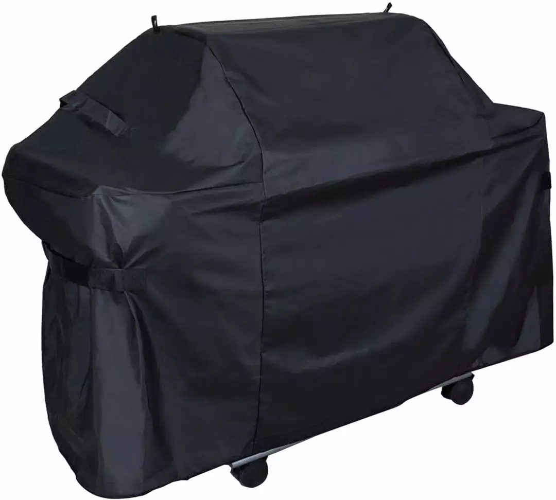 54-IN x 23-IN x 41-IN Deluxe PVC / Polyester Grill Cover with side handles, hanging loop and hook and loop closures.