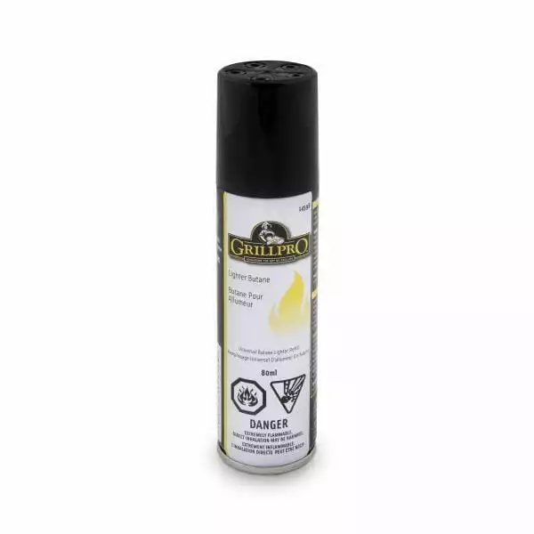 80 ml Butane refill. Universal filler tip, fits most butane lighters.