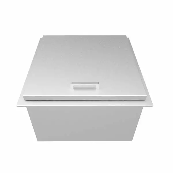 Add versatility to your outdoor kitchen with the 24-inch Aspire drop-in cooler. Constructed of insulated stainless steel walls, this bottle-depth storage station provides well-insulated ice storage, keeps beverages chilled, and five condiment trays let you have a variety of burger toppings close at hand. The lid on the drop-in cooler props open for fast, convenient access to the contents.