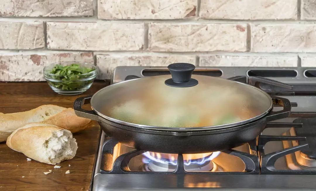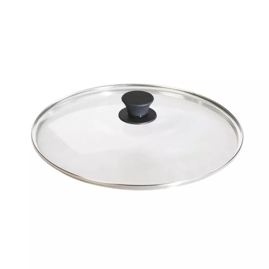 The 12 Inch Tempered Glass Lid fits perfectly over your 12 inch cast iron skillets and pans. It keeps moisture and flavor locked in the pan while you keep an eye on the progress of your recipe.