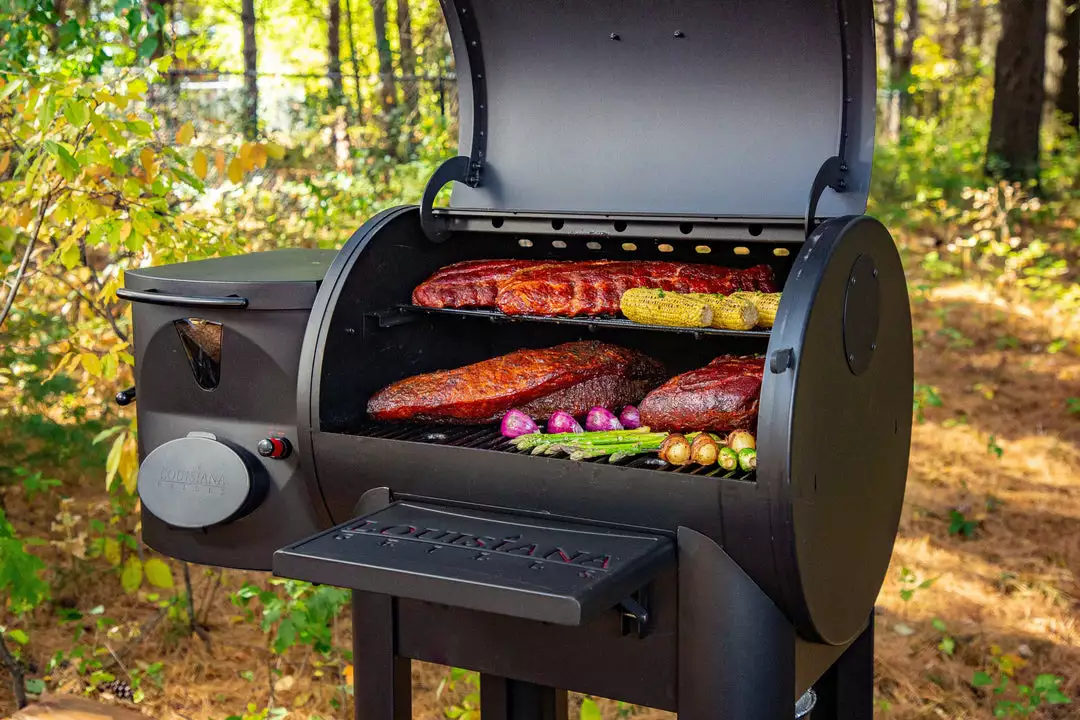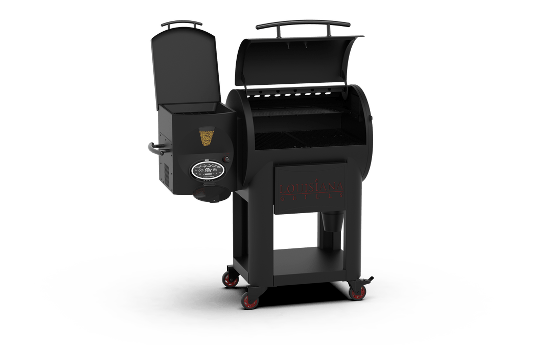 Built with a heavy-duty steel construction, the Premier 800 features a 22-inch barrel that will accommodate any cook job, no matter the size. These units also come equipped with a 29-pound pellet hopper with a viewing window, collapsible front shelf, a high-temperature powder coat finish and are backed by the Louisiana Grills® best-in-class five-year warranty.