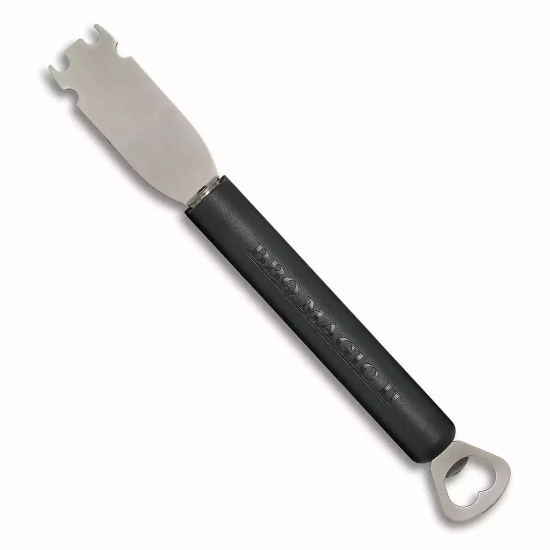 • Heavy-duty scraper & bottle opener