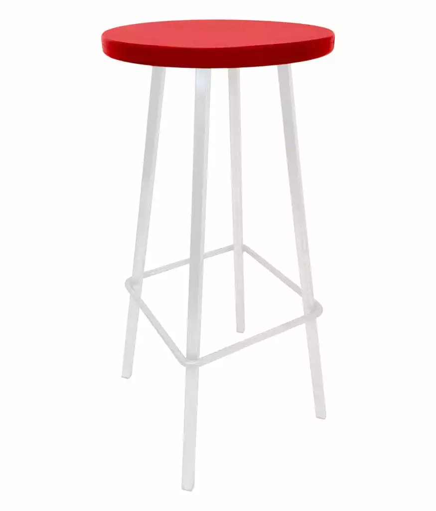 Our Resin Bar Stool is made from high quality 1″ thick recycled resin material and can hold up to 440lbs. The perfect addition to your Custom Bar Table! Available in 14″ Round. Featuring welded steel frame for leg support and powder coated finish. Made for industrial all season outdoor use. Both the Bar Stool Top and Frame available in Red, Blue, White, or Black, keep it one colour or mix and match to your liking!