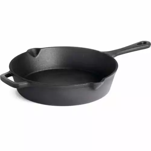 This 9.5-inch (24 cm) Cast Iron Frying Pan provides the best sear ever. Cook everything from veggies and side dishes to dessert. Use the Cast Iron Frying Pan anywhere, on or in the oven, the barbecue, and side burners, over or directly in charcoal, and even your firepit. The enameled surface provides a naturally non-stick finish that only gets better with use.