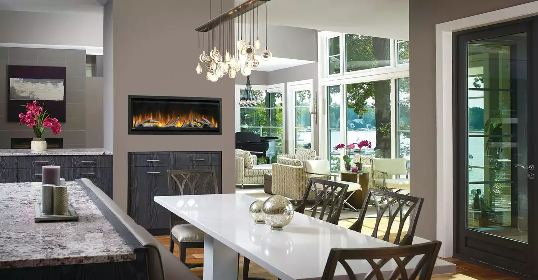 Napoleon’s Alluravision™ 42 Deep Depth linear electric fireplace allows you to see the fireplace and not the frame with its nearly frameless linear design. As a contemporary electric fireplace, the frameless modern look is just as important as its functionality. Easy to use, the plug and play installation allows this unit to be hung on the wall and turned on immediately.