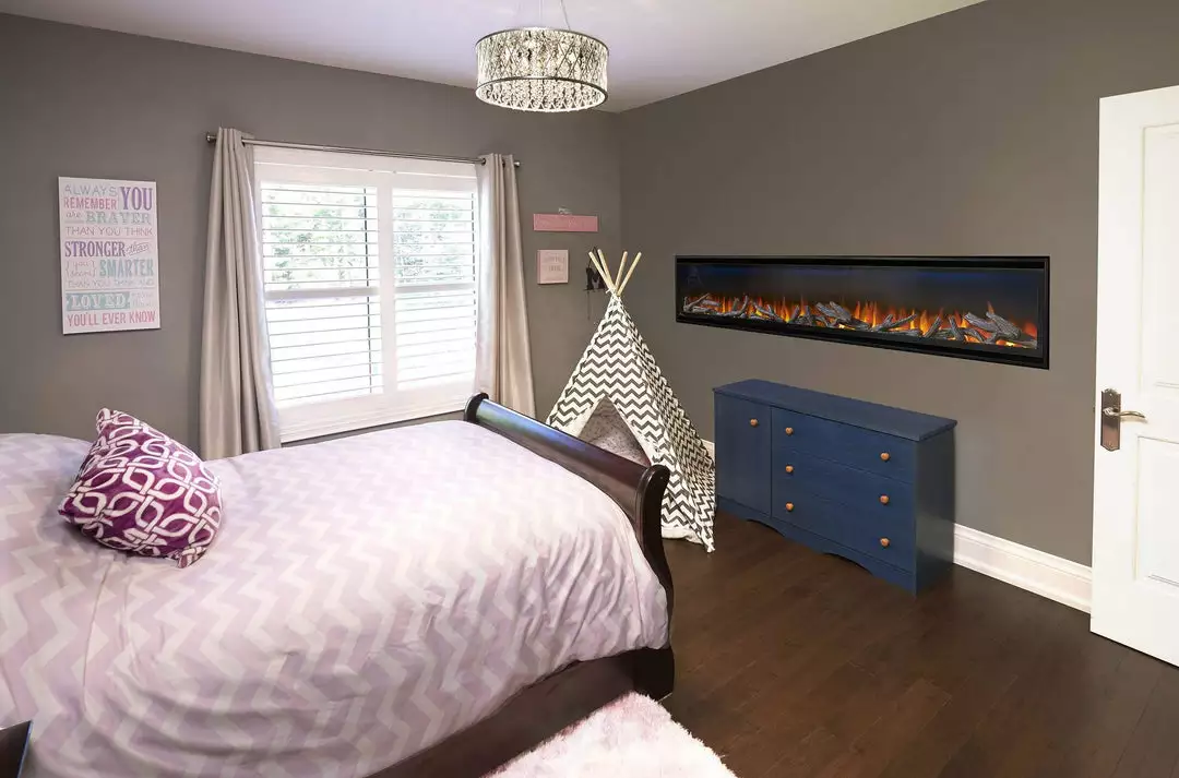 Napoleon’s Alluravision™ 74 Deep Depth linear electric fireplace allows you to see the fireplace and not the frame with its nearly frameless linear design. As a contemporary electric fireplace, the frameless modern look is just as important as its functionality. Easy to use, the plug and play installation allows this unit to be hung on the wall and turned on immediately.