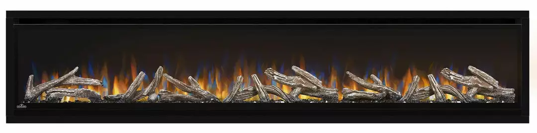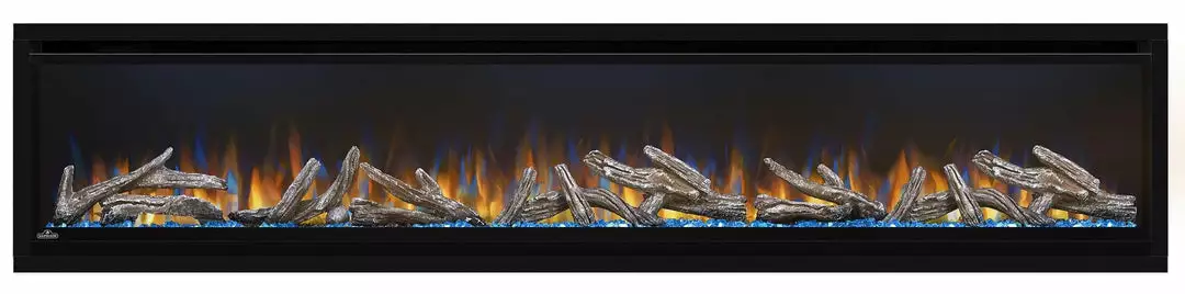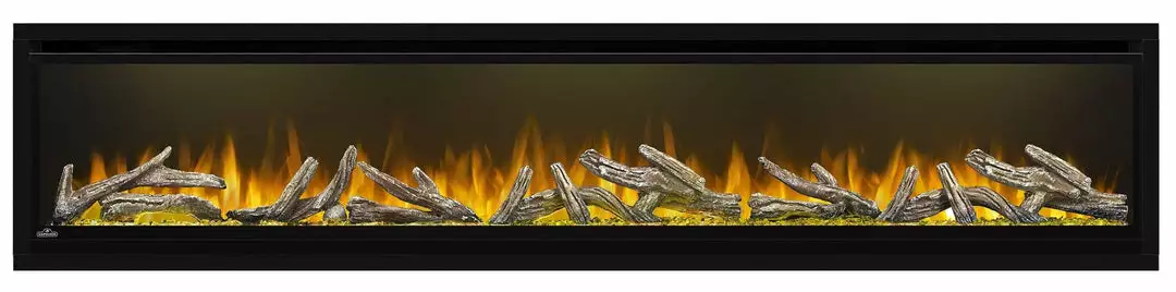 The Alluravision™ 74 can also be hardwired in to hide plugs. Select from four flame colors, yellow, orange, blue, and multi-colored and with five different flame speeds, further ensure the perfect atmosphere for any space. Illuminate the firebox without flame using the NIGHT LIGHT™ to boost ambient light and create a warm glow. Add the driftwood logs for increased hearth-like elegance. Enjoy the Alluravision™ 74 all year round with separate flame and heat controls.