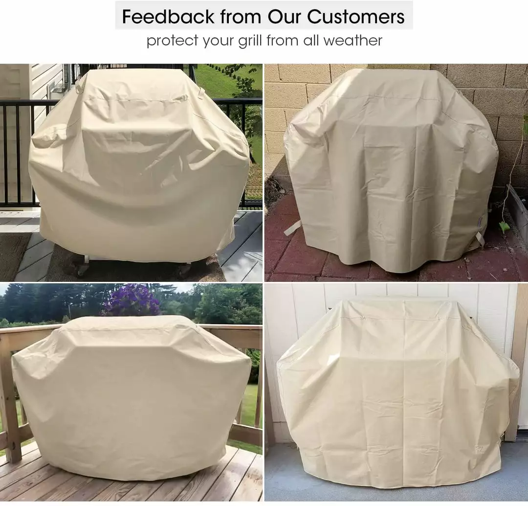 The SunPatio Grill Cover is designed to offer a high level of protection for your grills. Designed with meticulous detail, this water-repellent, high-density polyester outer shell and water-resistant vinyl undercoating ensure superior performance and long-lasting functionality in all-weather protection for your grills from snow, rain, wind, dust, dirt, etc.