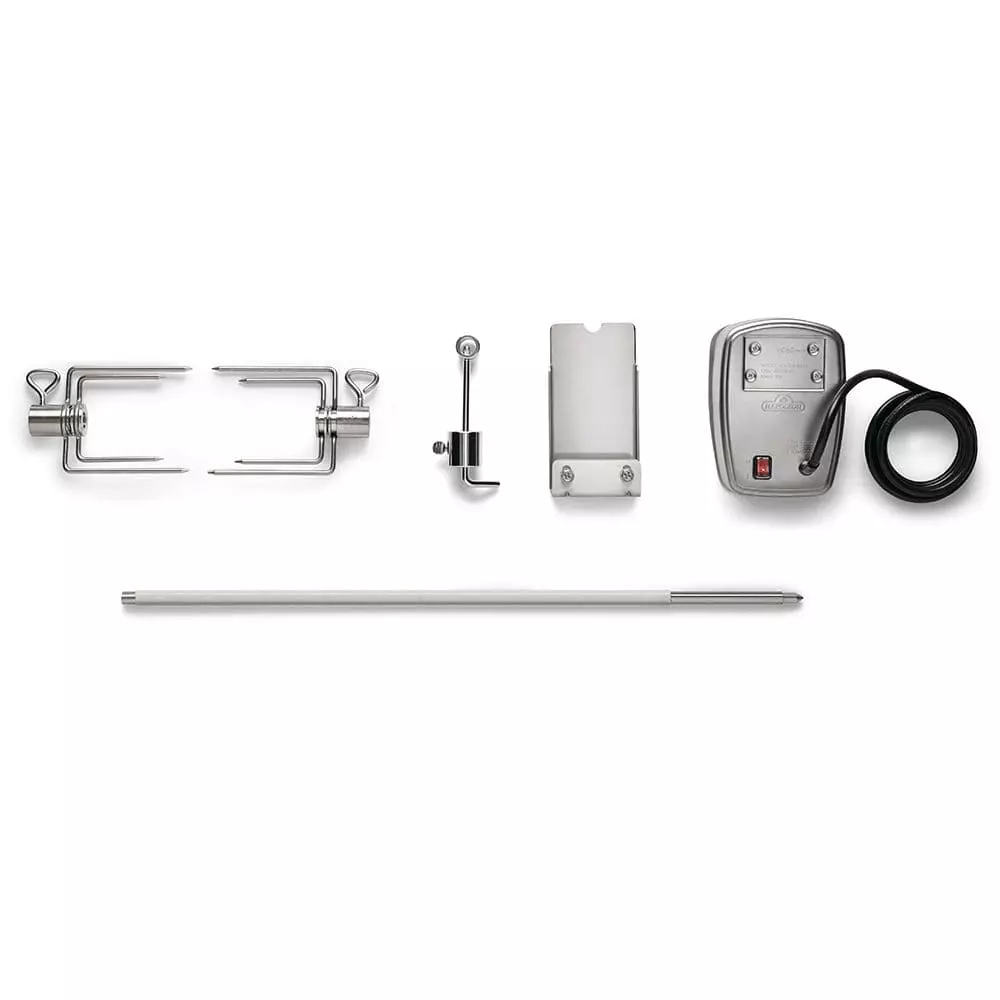 Napoleon 69851 Rotisserie Kit for Built-In 700 Series 44 provides a premium rotisserie kit for built-in 700 Series 44-inch grills. Featuring stainless steel construction on the hex-shaped spit rod and food-grade stainless steel construction on the forks, this unit has been built to last. The included commercial-quality rotisserie motor offers a reliable design, while the premium design of this kit allows you to increase your cooking options on your grill.