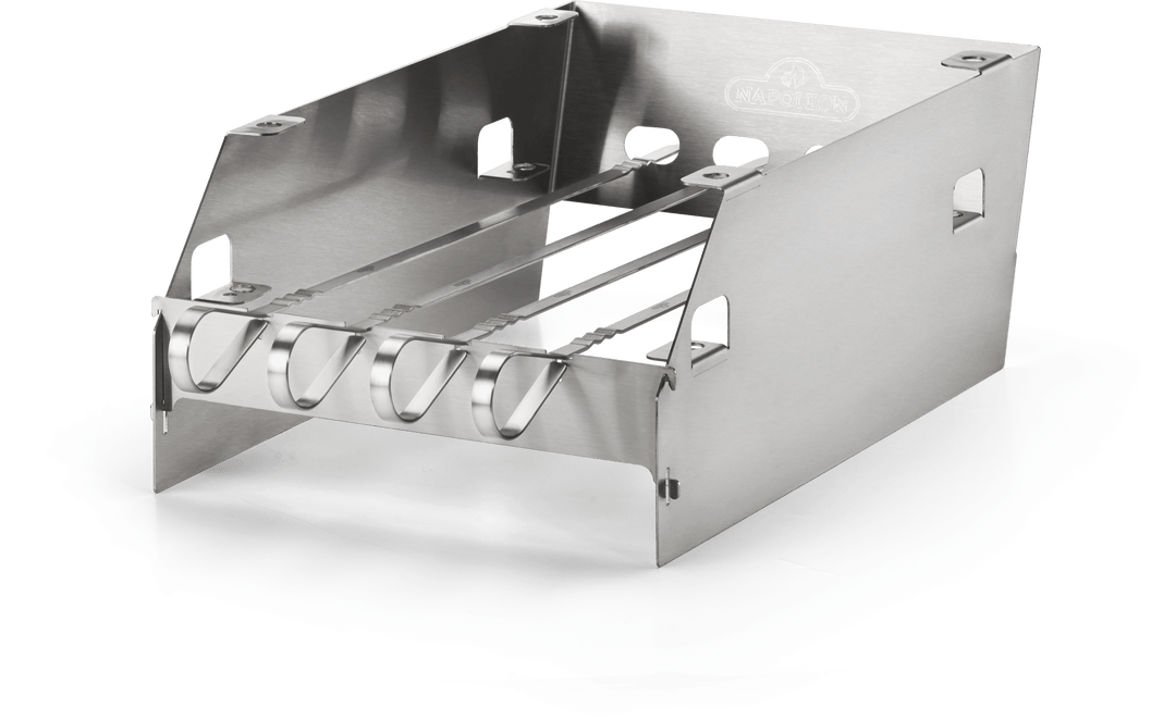 Use the integral skewer racks for grilling kebabs. The racks fold down when not in use to prevent food from dropping into the interior of the burner, while it remains readily available for use with the main burner. Comes with 4 stainless steel skewers.