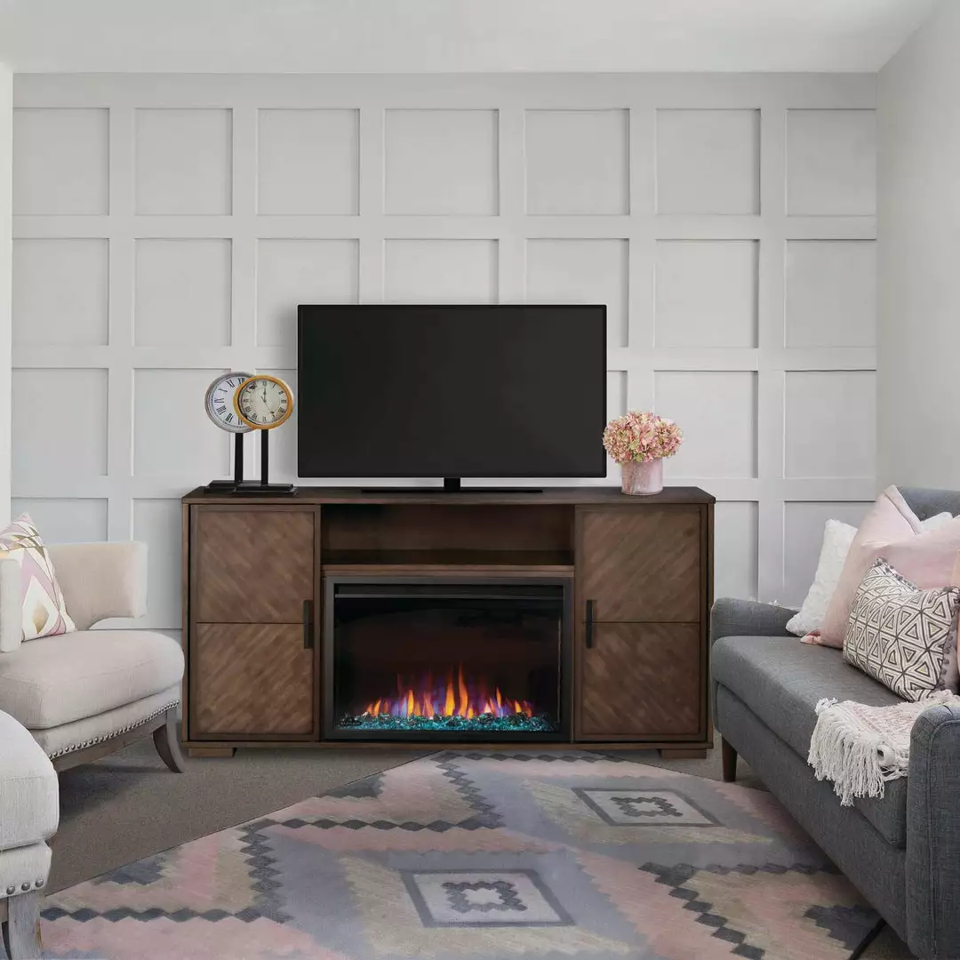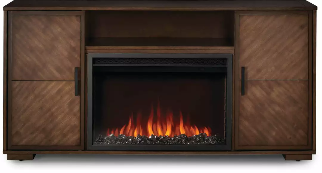 Add that hint of rustic charm to create a welcoming space in any room with the Hayworth Electric Mantel Package. Perfect for offices, commercial spaces, dorms, living areas and bedrooms, the darker mahogany finish on the Hayworth adds a stately weight, anchoring the design of any space. The included Cineview 30 electric fireplace provides two-stage heating, with a low energy and boost mode. Get the look you want with the included burnt oak log set or the black crystal media. Adjust the flame speed and brightness using the integrated touch control panel and premium display. The Hayworth can easily become the hub of your entertainment area with electric media and wire management that are cleverly hidden. Complete your space with the beautiful Hayworth Electric Mantel Package that provides simplicity and flexibility of styling, allowing you to include the luxury of a fireplace in any room.