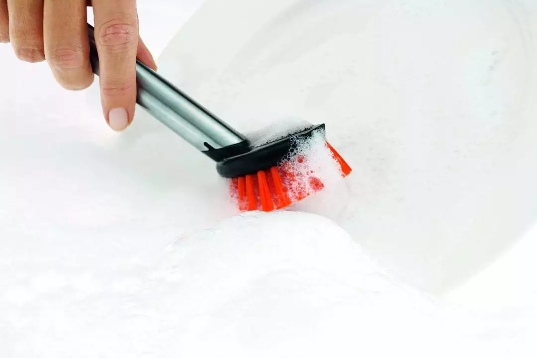 The dishwasher safe and antibacterial Washing-up Brush with its tough polyester bristles cleans dishes effectively and reliably. The brush head is exchangeable.