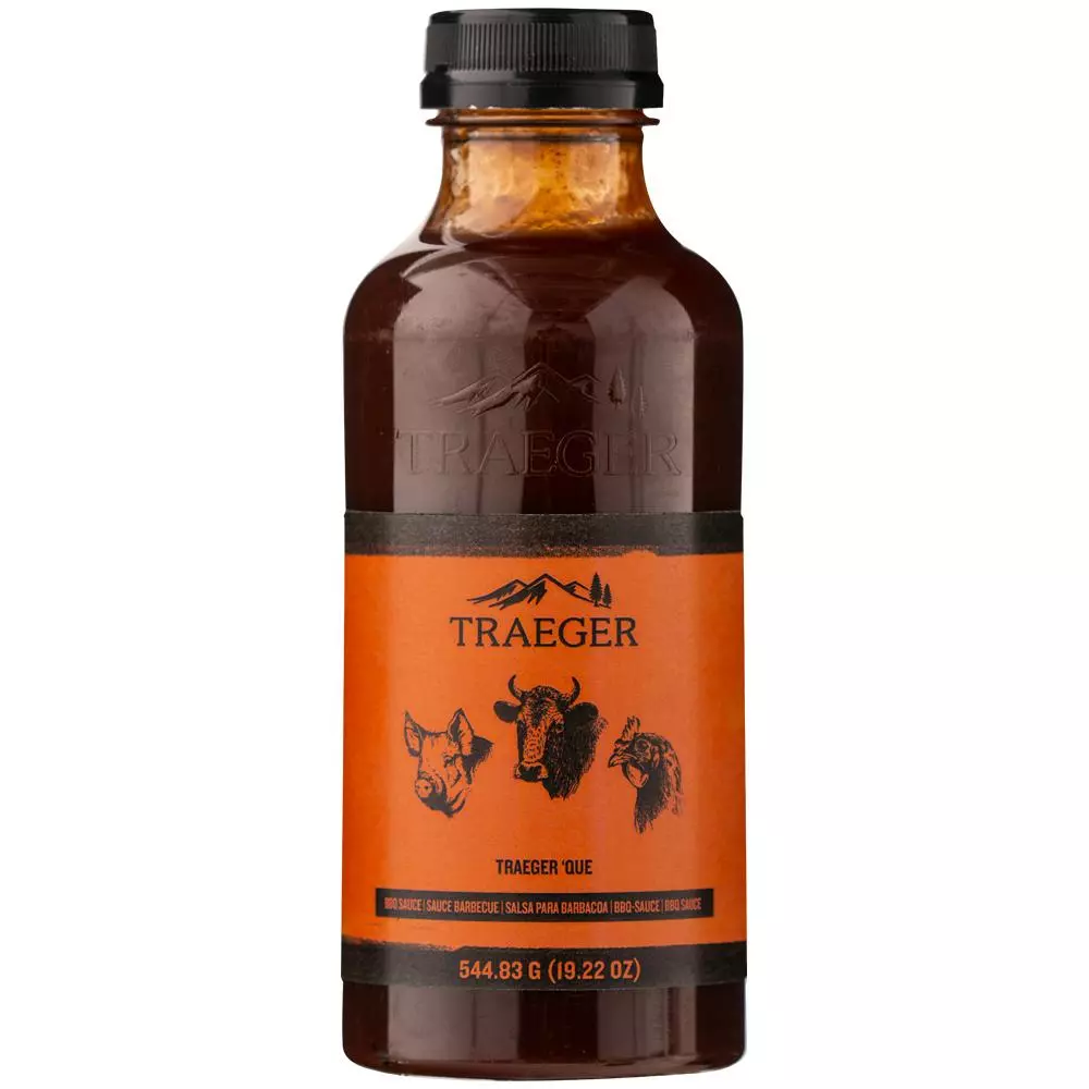 “Our signature Traeger ‘Que BBQ Sauce features notes of brown sugar, smoky hickory, and tangy vinegar for a classic flavor that’s a natural partner of ribs and pulled pork, but is also good on just about anything.” – Traeger Grills