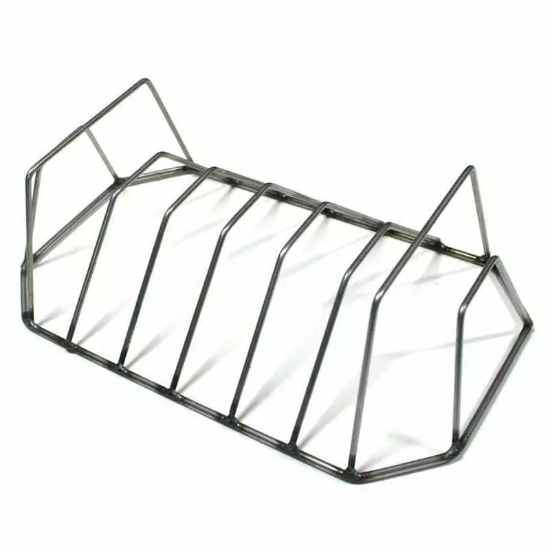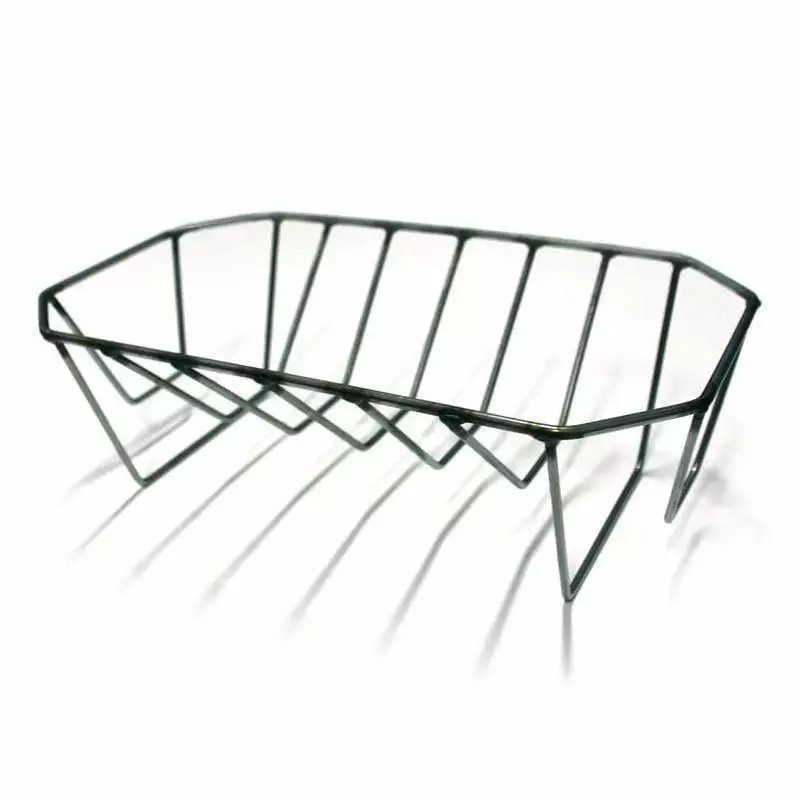 Extra Large rack holds up to 8 slabs or a large roast. The Rib Rack holds up to eight full rib slabs. Flip it over and it can hold a large roast. The size is 16” Long x 9” Wide.