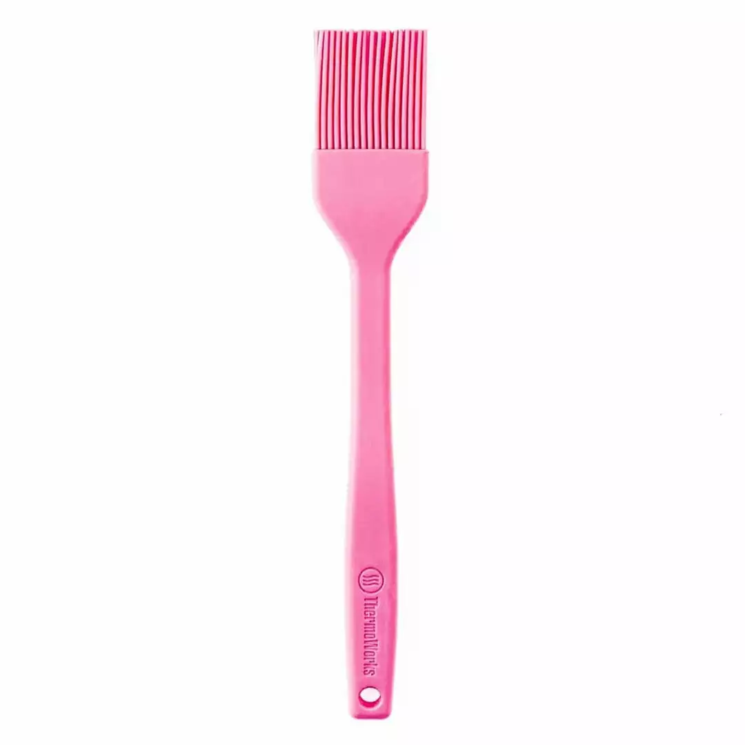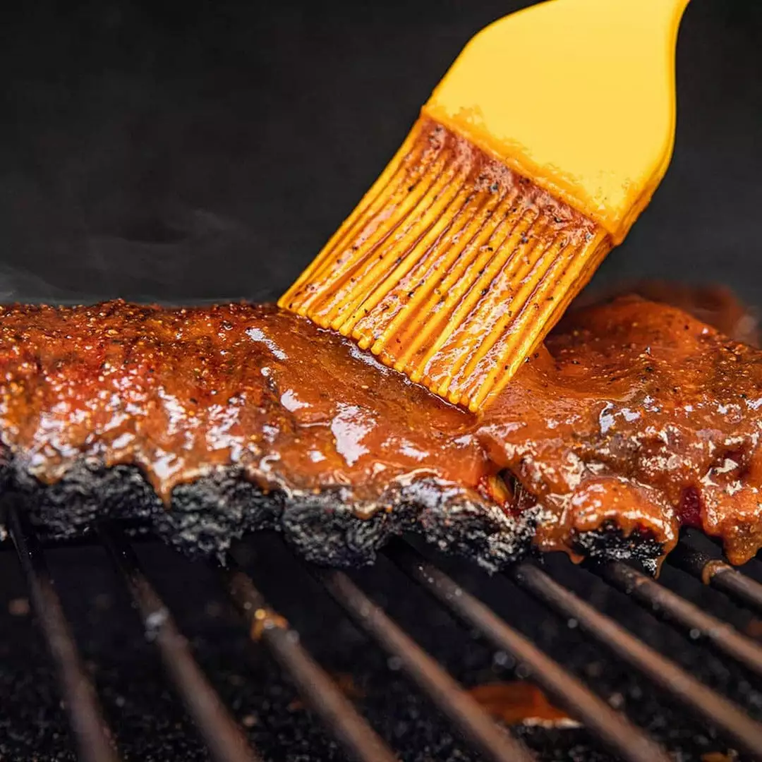 Whether you’re saucing up ribs, basting poultry, or glazing rolls you want a brush with an even, wide delivery in every stroke. We couldn’t find one that we loved, so we made our own. Made for the professional chef and pitmaster, it’s 85, 2.1-inch long silicone bristles are perfectly spaced to hold and transfer a 2-inch wide hearty stroke of sauce right where you need it. A 12-inch long ergonomic handle feels good in your hand and keeps you further away from heat than smaller flimsy brushes. The ThermoWorks Silicone Brush is BPA- and stain-free, rated to 600F and easily cleaned in the dishwasher. Choose from 10 colors to prevent cross-contamination, to match your Thermapen, or just to let your BBQ team know it’s yours. Unload twice the sauce in every swipe with a silicone brush from ThermoWorks, the trusted leader in temperature and BBQ.